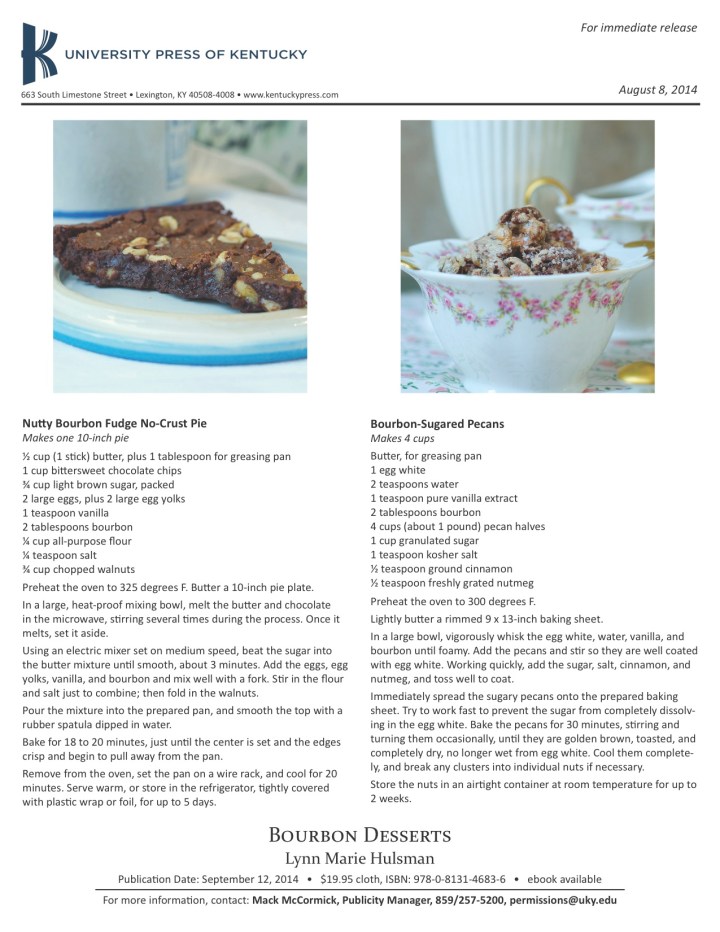 Thank you to the University Press of Kentucky for providing these mouthwatering sample recipes from Bourbon Desserts. Share this: Click to share on X (Opens in new window) X Click to share on Pinterest (Opens in new window) Pinterest Click to share on LinkedIn (Opens in new window) LinkedIn Click to share on Facebook (Opens in new window) Facebook Click to share on Reddit (Opens in new window) Reddit Click to share on Tumblr (Opens in new window) Tumblr Click to email a link to a friend (Opens in new window) Email Like Loading...
