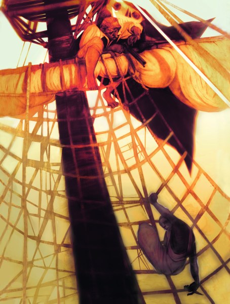 ‘One more step, Mr. Hands,’ said I, ‘and I’ll blow your brains out!’ Image from The Folio Society’s Treasure Island, illustrated by Sterling Hundley. Reproduced with permission.