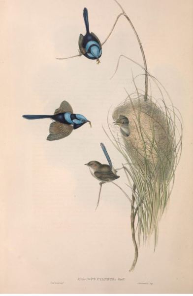 Image: Superb Fairywren The Birds of Australia. London, Printed by R. and J. E. Taylor; pub. by the author,[1840]-48. Plate 18 by John Gould. Courtesy of Biodiversity Library and Smithsonian.